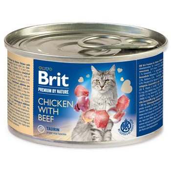 Konzervy Brit Premium by Nature doplňují řadu suchých krmiv Brit Premium a nabízí tak chovatelům další alternativu ve stravování jejich koček. Konzervy mají formu velmi jemného a krémového paté, vyrobeného z přírodních surovin s ohledem na prospěšnost pro zdraví koček. Složení: kuře 28 %, hovězí játra 17 %, hrachová mouka 2 %, lignocelulóza 1 %. Analytické složky: hrubý protein 12 %, hrubé oleje a tuky 3 %, hrubý popel 2,5 %, vlhkost 78 %, hrubá vláknina 0,5 %, vápník 0,4 %, fosfor 0,3 %, sodík 0,2 %. Nutriční doplňkové látky v 1 kg: vitamin D3 (3a671) 200 m.j., vitamin E (3a700) 100 mg, biotin (3a880) 0,3 mg, zinek (3b606) 8 mg, železo (3b106) 6 mg, mangan (3b504) 1,5 mg, jodid draselný (3b201) 0,4 mg, měď (3b406) 0,3 mg, taurin (3a370) 500 mg. Metabolizovatelná energie: 910 kcal/kg
