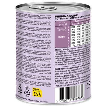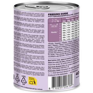 Jedná se o 100% kompletní a vyvážené mokré krmivo. To znamená, že poskytuje všechny základní živiny, které váš pes potřebuje – není nutné žádné další krmivo.