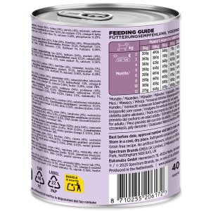 Jedná se o 100% kompletní a vyvážené mokré krmivo. To znamená, že poskytuje všechny základní živiny, které váš pes potřebuje – není nutné žádné další krmivo.