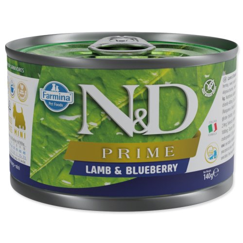 Chutná masová konzerva s jehněčím a borůvkou. Kompletní vlhké krmivo pro dospělé psy malých plemen. Složení: Jehně (50 %), sleď, batáty, vařená vejce, rybí olej, borůvky (2 %), fruktooligosacharidy, cholin chlorid, chondroitin sulfát, glukosamin, vitamíny, minerály. Doplňkové látky na 1 kg: Nutriční doplňkové látky: Vitamín A 4000 MJ; Vitamín D3 400 MJ; Vitamín E 130 mg; chelát zinku hydroxy analogu methioninu 200 mg; chelát manganu hydroxy analogu methioninu 40 mg; chelátová forma železa, hydrát 70 mg; chelát mědi hydroxy analogu methioninu 16 mg; inaktivované kvasinky obohacené selenem 1,10 mg; DL-Metionin 1000 mg; Taurin 500 mg; L-Karnitin 50 mg. Analytické složky: Vlhkost 75 %; hrubý protein 10,50 %; hrubé tuky a oleje 7 %; hrubá vláknina 0,80 %; hrubý popel 2,40 %. Dávkování: