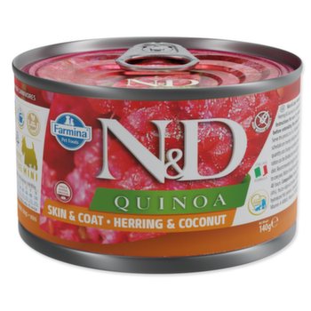 Kompletní vlhké krmivo pro dospělé psy. Farmina N&D Quinoa Herring & Coconut je krmivo pro zvláštní účely výživy určené k podpoře omezení intolerance určitých komponentů a živin.