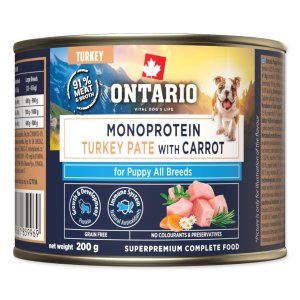 Konzerva Ontario Puppy monoprotein krůtí pate s mrkví 200g