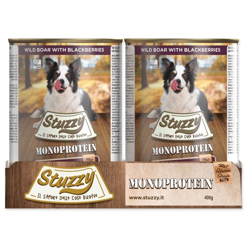 Složení: maso a živočišné produkty (68% maso z divokého prasete), 28,8% vývar z divokého prasete, ovoce (2% ostružiny), 1% minerální látky, 0,1% provensálské koření, 0,1% lněný olej.