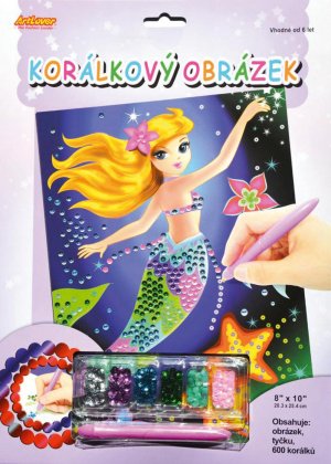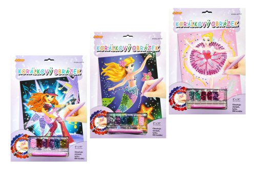 Z obrázku odstraníte ochrannou folii a na příslušná místa lepíte korálky, které nanášíte pmocí tyčinky. Rozměr obrázku: 20 x 25 cm, na kartě 23 x 32 cm, mix druhů Vhodné od 6 let.