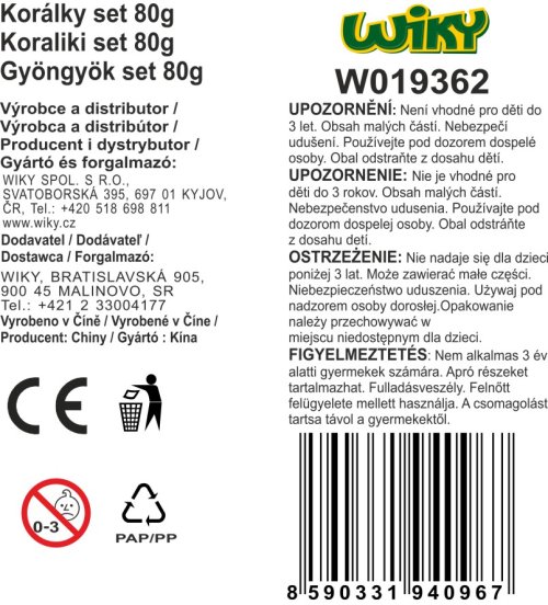 Korálkový set o hmotnosti 80g ve tvaru medvěda. 11 různých druhů korálků + provázek.