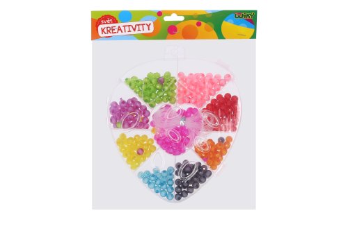 Korálkový set o hmotnosti 90g ve tvaru jahody. 9 různých barev korálků + provázek.