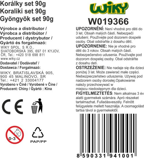 Korálkový set o hmotnosti 90g ve tvaru kvádru. 13 různých druhů korálků + provázek.