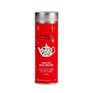 Kořeněné červené ovoce v bio kvalitě od značky English Tea Shop má ovocnou sladkou a lehkou chuť. Díky kombinace jablek, jahod, malin a višní má krásnou a ovocnou chuť i vůni a skořice dodává štiplavou chuť. Čaj je zcela bez kofeinu a je vhodný pro děti, těhotné a kojící ženy.