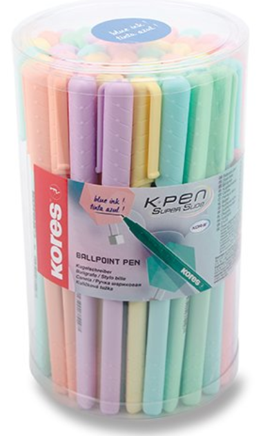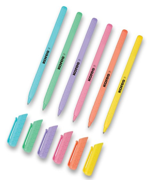 Kuličkové pero v mixu 6-ti pastelových barev Extra jemný modrý inkoust na bázi gelu Chromovaný hrot velikost M=1mm Ergonomický trojhranný tvar Kuličkové pero vysoké kvality s kuličkou z karbidu wolframu …