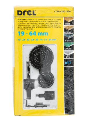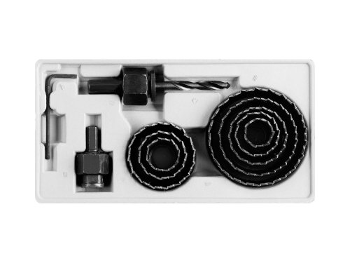Sada vykružovacích pil do dřeva a sádrokartonu 11 dílů. Korunka se používá pro utvoření otvoru do sádrokartonu pro následné zapojení zásuvky, do dřevěného stolu pro otvor na kabely apod.