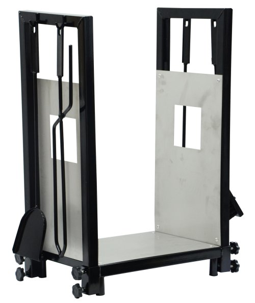 Krbové nářadí s košem na dřevo, který je praktickým pomocníkem pro přenos a uskladnění dřeva u krbu. Nářadí se skládá z pohrabáče pro manipulaci se žhavým popelem a pro práci s otevřeným ohněm, smetáčku a lopatky na smetení popela či kousků dřeva a klestí.