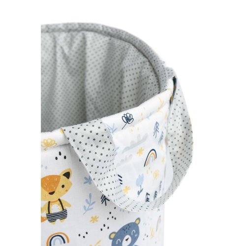 Bavlněný koš Sensillo je ideální pro dětský pokoj, kde pojme spoustů hraček a doplňků. Lze jej také použít jako koš na prádlo. Je oboustranný a jeho potah je vyroben ze 100% bavlny. Byl vyztužen vrstvou silikonové netkané textilie, díky níž si udržuje svůj tvar, a po složení se vejde do zásuvky. Má rukojeti pro snadné přenášení.