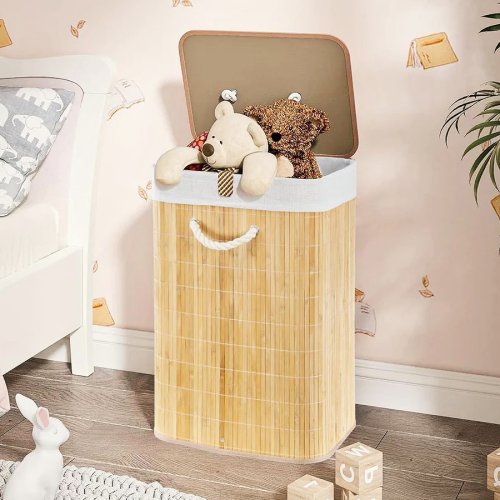 Tento koš na prádlo je vyroben z bambusu a pevné látky, takže vám zajistí dlouhou životnost. Kovové výztuhy dodávají stabilitu a skládací konstrukce umožňuje pohodlné skladování, když se nepoužívá.