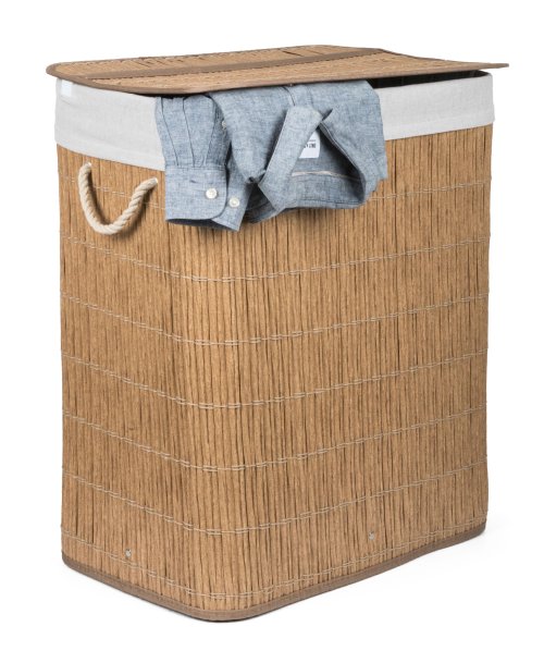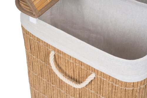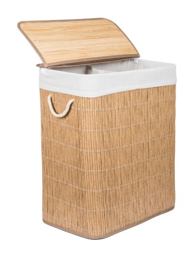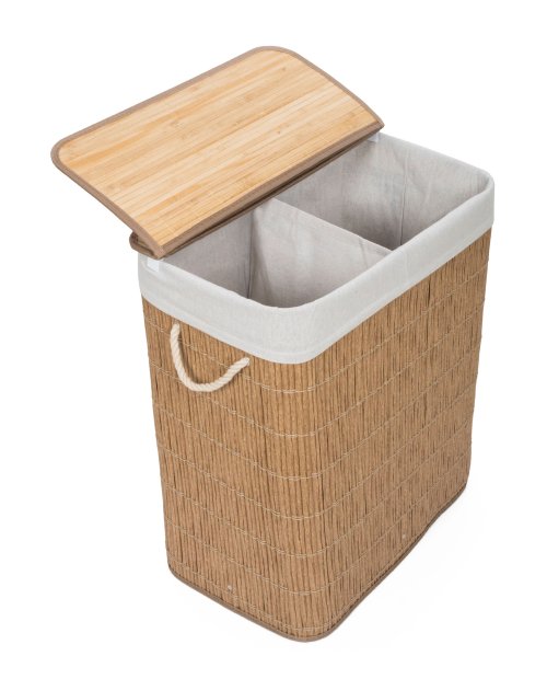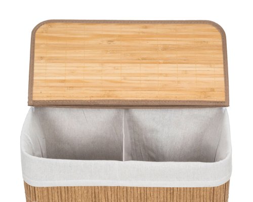 Koš na prádlo G21 z PE ratanu s pevným víkem má pratelnou látkovou vložku, rozdělenou na dva samostatné oddíly. Špinavé prádlo tak můžete třídit už před praním a umístit zvlášť kousky podle materiálu nebo barvy.