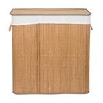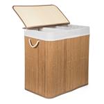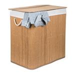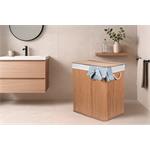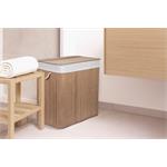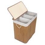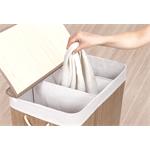 Bambusový koš G21 s pevným víkem má pratelnou látkovou vložku, rozdělenou na tři samostatné oddíly. Špinavé prádlo tak můžete třídit už před praním a umístit zvlášť kousky podle materiálu nebo barvy.