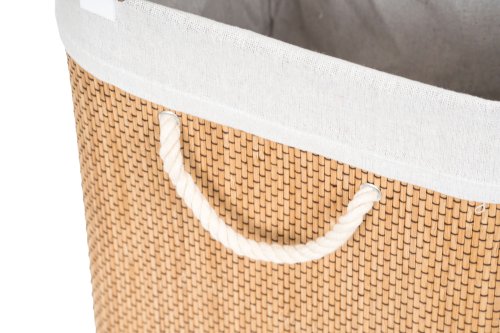Bambusový koš s látkovou vložkou přidává interiéru příjemný přírodní dojem. Jeho jemné a teplé barvy mohou oživit a doplnit jakýkoliv prostor bez ohledu na jeho styl – skvěle ladí s rustikálním i moderním nebo minimalistickým interiérem, přizpůsobí se stylu vašeho domova.