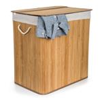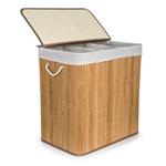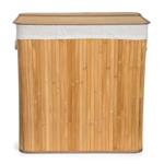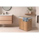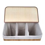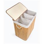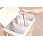 Bambusový koš G21 s pevným víkem má pratelnou látkovou vložku, rozdělenou na tři samostatné oddíly. Špinavé prádlo tak můžete třídit už před praním a umístit zvlášť kousky podle materiálu nebo barvy.