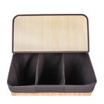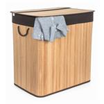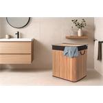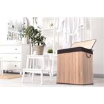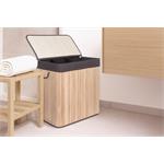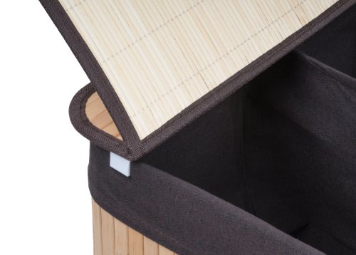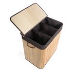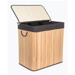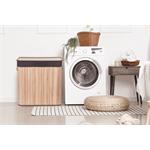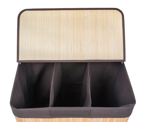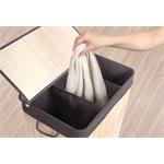 Bambusový koš G21 s pevným víkem má pratelnou látkovou vložku, rozdělenou na tři samostatné oddíly. Špinavé prádlo tak můžete třídit už před praním a umístit zvlášť kousky podle materiálu nebo barvy.