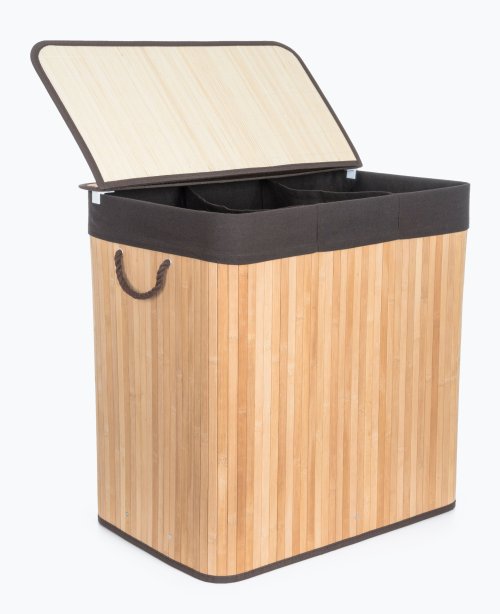 Kam se špinavým prádlem? Do lehkého a zároveň pevného a stabilního, nenápadného a přitom designově zajímavého bambusového prádelního koše. Třídílný koš s pratelnou vnitřní vložkou a praktickými uchy pro snadné přenášení sluší každému interiéru.