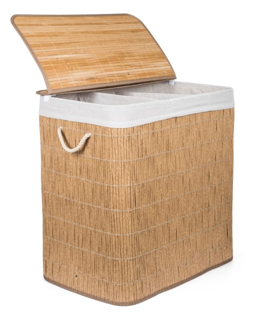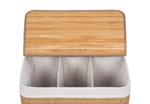 Koš na prádlo G21 z PE ratanu s pevným víkem má pratelnou látkovou vložku, rozdělenou na tři samostatné oddíly. Špinavé prádlo tak můžete třídit už před praním a umístit zvlášť kousky podle materiálu nebo barvy.