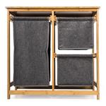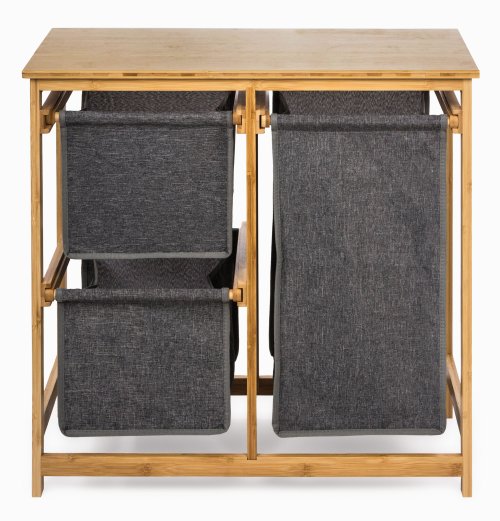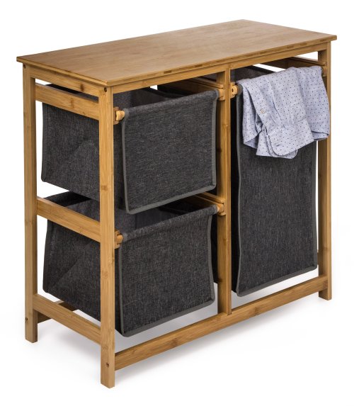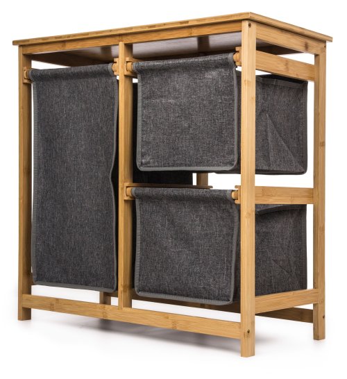Kam s prádlem, ať už špinavým na vyprání nebo čistým na uložení? Do lehkého a zároveň pevného a stabilního, nenápadného a přitom designově zajímavého bambusového prádelního koše se třemi úložnými výsuvnými boxy. Každý z boxů unese samostatně až 10 kg prádla.