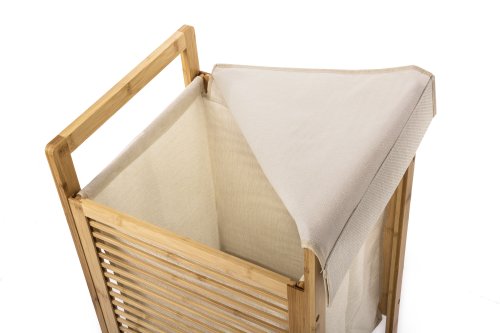 Bambusový koš s látkovou vložkou přidává interiéru příjemný přírodní dojem. Jeho jemné a teplé barvy mohou oživit a doplnit jakýkoliv prostor bez ohledu na jeho styl – skvěle ladí s rustikálním i moderním nebo minimalistickým interiérem, přizpůsobí se stylu vašeho domova.