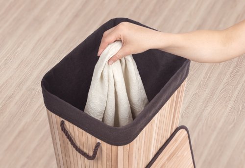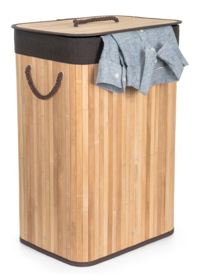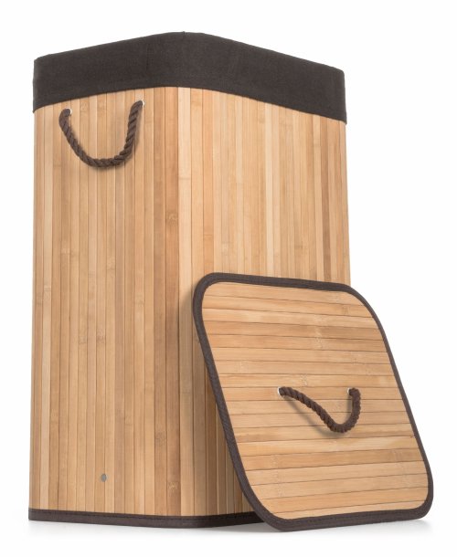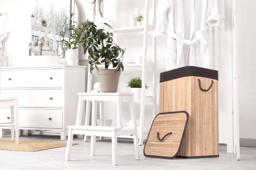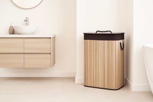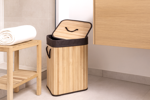 Jak vybrat nejlepší koš na špinavé prádlo? Co se materiálu koše týče, doporučujeme jednoznačně bambus. Je odolný vůči vlhkosti, takže jej můžete bez obav umístit do koupelny nebo servisní místnosti s pračkou. Zároveň je i vizuálně velmi příjemný – kombinace přírodního materiálu a barevně sladěné vložce a držadlům evokuje pocit čistoty, navíc se i hodí k jakémukoliv interiéru.
