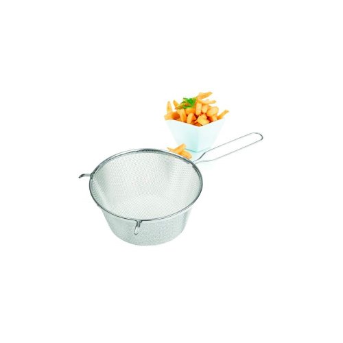 Košík je při vaření či smažení vložený v hrnci. Když je pokrm hotový, vyjmete košík, takže vařená zelenina, těstoviny okapou přímo nad hrncem. Umožňuje také pohodlné smažení v oleji. Materiál nerez. Průměr 19.5 cm, výška 11 cm, délka 35 cm. Vhodný do myčky nádobí. EAN 8591022362563