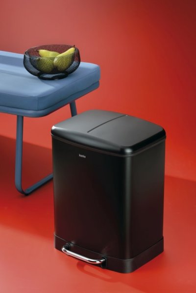 Odpadkový koš Davino kombinuje stylový matně černý kovový design s praktickými funkcemi pro snadné třídění odpadu. Díky dvěma odděleným přihrádkám o objemu 12 + 12 litrů udržíte domácnost čistou a organizovanou.