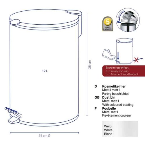 KELA Mats – Pedálový odpadkový koš 12 l, bílá
