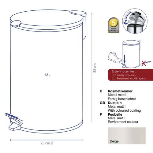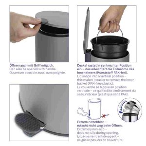 Na víku je umístěno praktické madlo, které umožňuje otevření i bez použití pedálu.