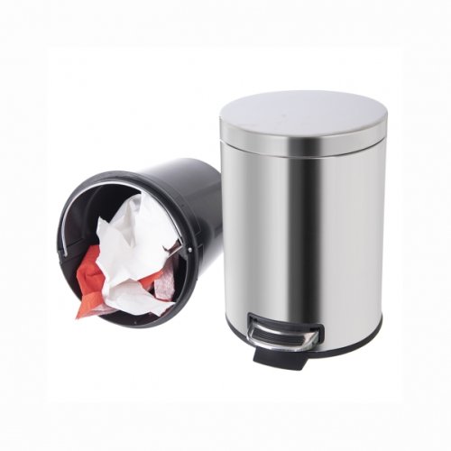 Matný nerezový odpadkový koš s nášlapným pedálem. Objem 3 litry, průměr 17 cm, výška 25.5 cm. Plastová vyjímatelná vložka s nerezových uchem. Na zadní straně koše kovové ucho pro odnos celého koše. Balení v krabici. EAN 8592381163976