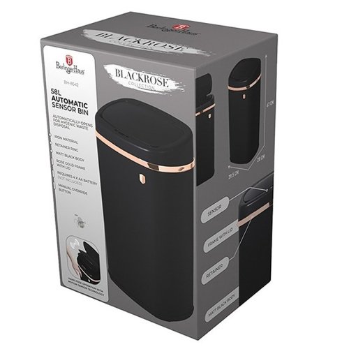 Tento odpadkový koš je ideální pro použití v kuchyni, koupelně nebo WC. Je vybaven tichým senzorovým systémem víka, který zajišťuje pohodlné a hygienické používání. Koš je vyroben z nerezové oceli a má elegantní černozlatý design, který se hodí do každého moderního interiéru.