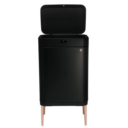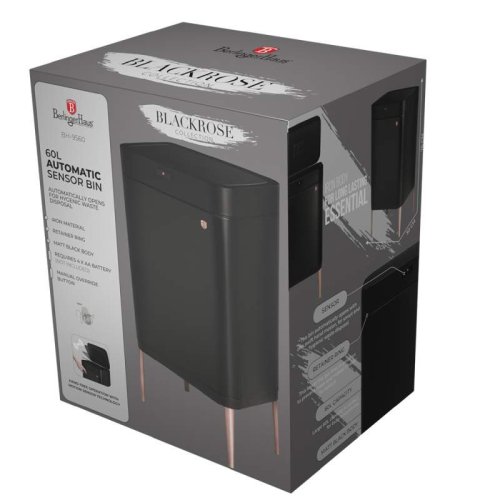 odpadkový koš vhodný do kuchyně i koupelny nebo wc - tichý senzorový systém víka - 4 ks AA baterie nejsou součástí balení - tělo i víko vyrobeno z nerezové oceli - rozměry 76x42x30 cm - objem: 60 litrů - kolekce Black Rose Collection - značka BerlingerHaus
