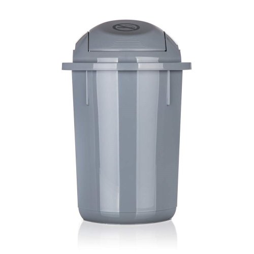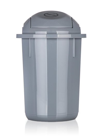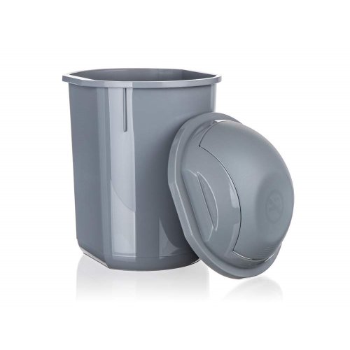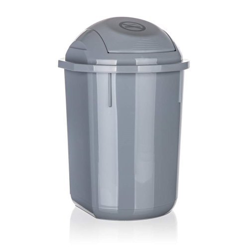 Koš odpadkový 22 l, v šedé barvě, s výklopným víkem, má jednoduchý a důmyslný zavírací mechanismus.