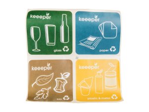 Součástí koše jsou nálepky na třídění odpadu (sklo, papír, bio a plast + kov) kterými lze koš označit.