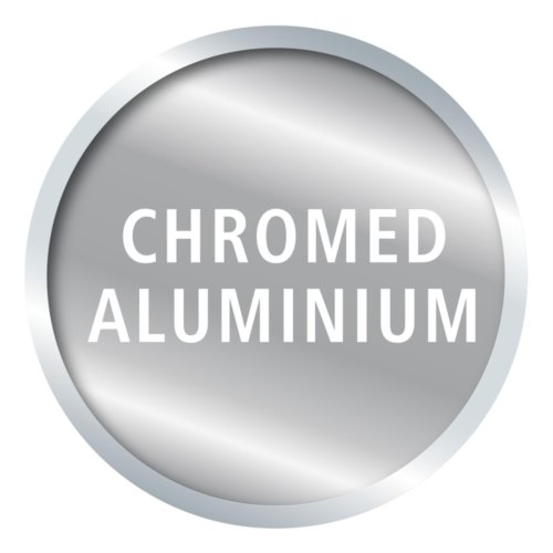 Pochromovaný hliník s vysokým leskem, zaoblené provedení, kruhové nástěnné podložky