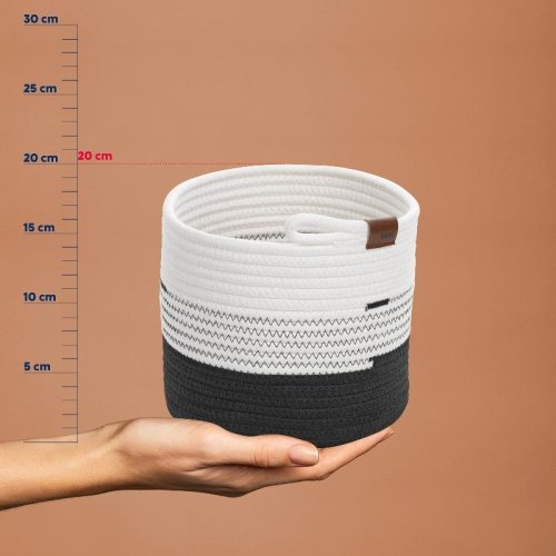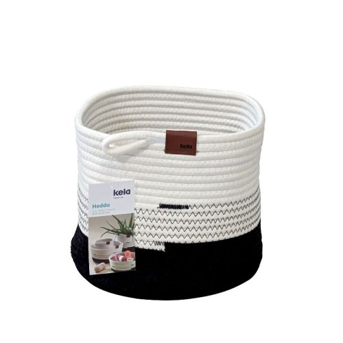 Udržovat pořádek a uklízet je zábava: černo/bílý úložný koš ze směsových vláken - ze série Hedda od kela. Všestranný a robustní koš s copánkovým vzhledem má rozměry: 23 cm a výška 20 cm Směs bavlna/polyester 23 cm, v. 20 cm