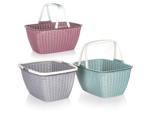 Košík nákupní plastový ACASSA 17 l, mix barev je vhodný na přenášení nákupu do hmotnosti 10 kg. Assort barev. Rozměr: 44 x 32 x 22 cm, objem: 17 l.