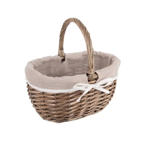 Proutěný koš s uchem a s vnitřní látkou využijete na piknik. Můžete v něm převážet také nákup a jiné věci při cestování např. na chalupu. Bez vnitřní látky se bude hodit do lesa na houby. Vyrobeno z vrbového proutí, textilie (60 % bavlna, 40 % polyester). Praní na 40 °C, nesušit v sušičce, nepoužívat bělidla. Rozměry 32.5 x 23 x 17/32 cm (ruční práce, rozměry se mohou kus od kusu mírně lišit). EAN 8592381223281