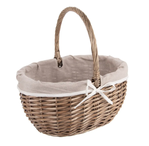 Proutěný koš s uchem a s vnitřní látkou využijete na piknik.