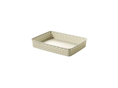 Kvalitní plastový košík v moderním ratanovém provedení, vhodný především na organizaci papíru A4. Rozměry 36 x 26 x 6 cm. Barva krémová. EAN 3253920095008