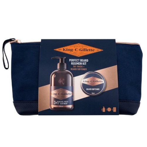 Šampon na vousy, obličej a vlasy King (Beard, Face & Hair Wash) 350 ml Balzám na vousy King (Beard Softener) 100 ml Kosmetická taška