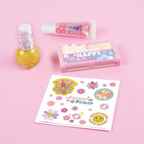 Sada obsahuje láhev na pití, 1 lahvičku laku na nehty (5 ml), 4 barvy paletky očních stínů, 1 tubu lesku na rty a arch nálepek. Věk 8+.