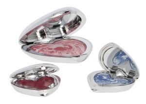 Kosmetická sada „Sweethearts Orchid Love“ – dárková sada obsahuje 3 kovová srdíčka – 1× tvářenka, 1× oční stíny a 1xrtěnka. Dermatologicky testováno, vyhovuje přísným normám EU.