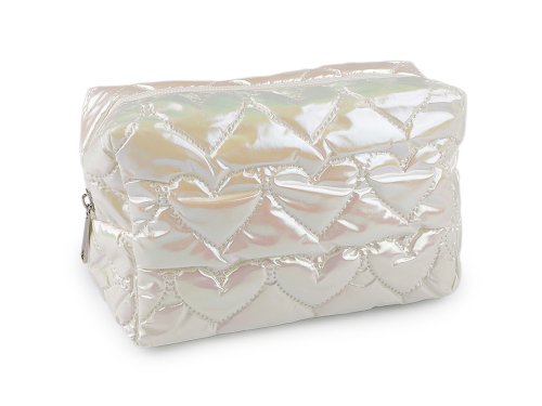Kosmetická taška / pouzdro prošívané, srdce 18x11 cm holografické - krémová nejsvět.
