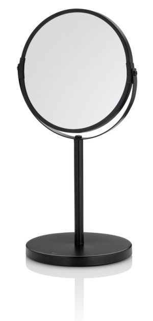 Jednoduché otočné stojací zrcátko Elias v moderní černé barvě: Krásné kosmetické zrcátko je vyrobeno z kovu a má kulatou základnu. Stojací zrcátko má 1x a 3x zvětšení. Zrcadlová plocha má průměr 16 cm. Celkově měří zrcadlo celkovou výšku 34,5 cm. Matný kov 1x/3x zvětšovací otočný, 34,5 cm v, 17 cm