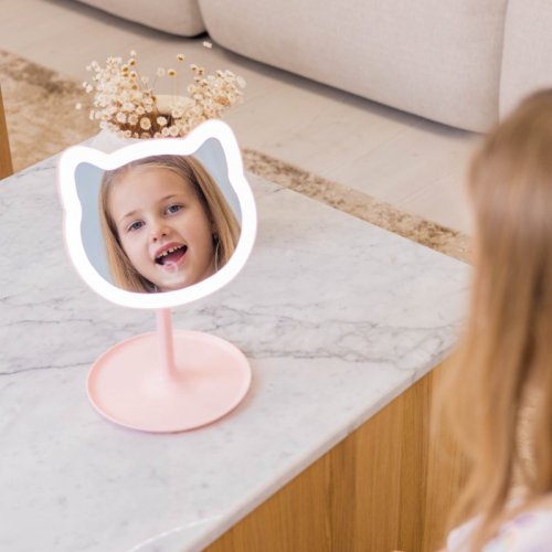 Kosmetické zrcátko s LED podsvícením, které nesmí chybět v pokojíčku žádné malé princezny.