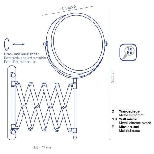 Materiál: pochromovaný kovPrůměr: 18,5 cmDélka: 18 - 40 cmVýška: 35,5 cm5x zvětšující
