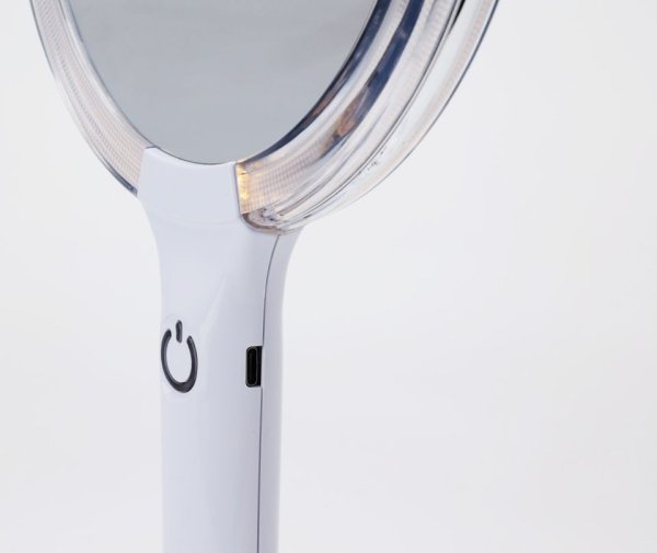 Oboustranné zrcátko na noze v průhledném organizéru. Na jedné straně 5x zvětšovací zrcátko, na druhé straně normální zrcátko. 3 různá LED světla s chytrým dotykovým tlačítkem s funkcí stmívání. Obsahuje nabíjecí kabel typu c, 1x 14500 3,7V 500mah lithium-iontová baterie (dobíjecí, nevyměnitelná).